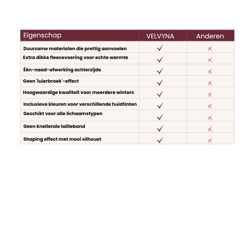 Bekijk zelf waarom Velvyna de fleece panty is waar andere merken simpelweg niet aan tippen.
